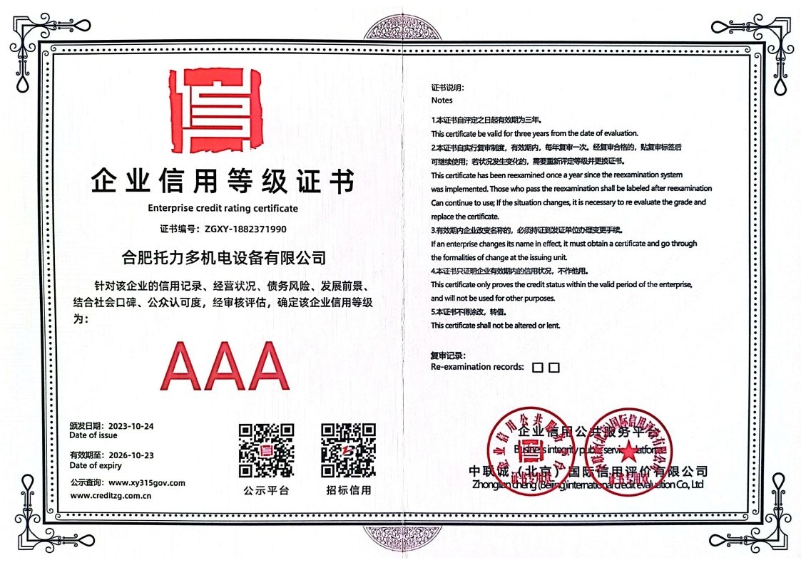 企業(yè)AAA信用等級證