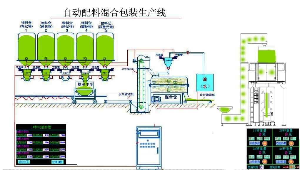 1.自動(dòng)化程度高:整個(gè)配料過(guò)程、包裝過(guò)程全部自動(dòng)完成,提高效率,節省人工;